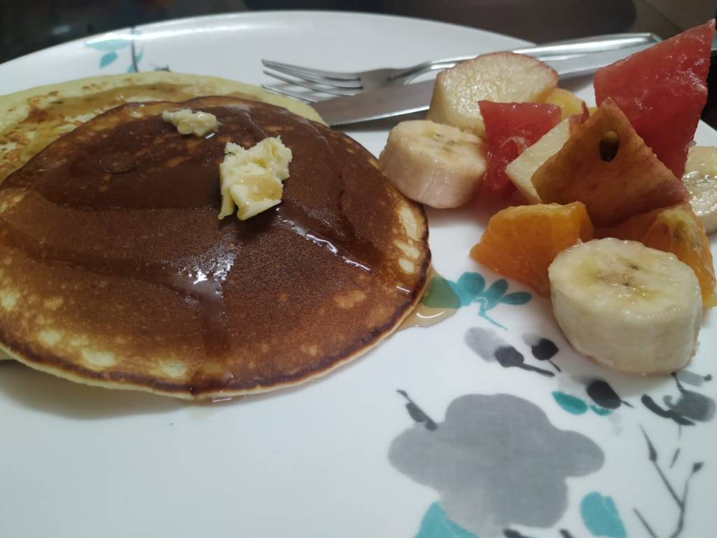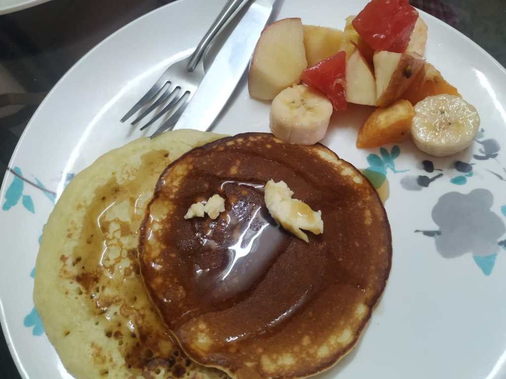 This time, it was pancakes. I always thought they would not be easy to make and so never tried making them at home. It was the first time we were making them. I checked the recipe. There are many ingredients which we don’t have at home, I said. He showed me all the ingredients he did buy the previous evening, a smirk on his face. Oh, so he did plan this yesterday itself. Bongs will be bongs, they literally plan the next day’s meal a day before, I said. There was a big grin on his face.